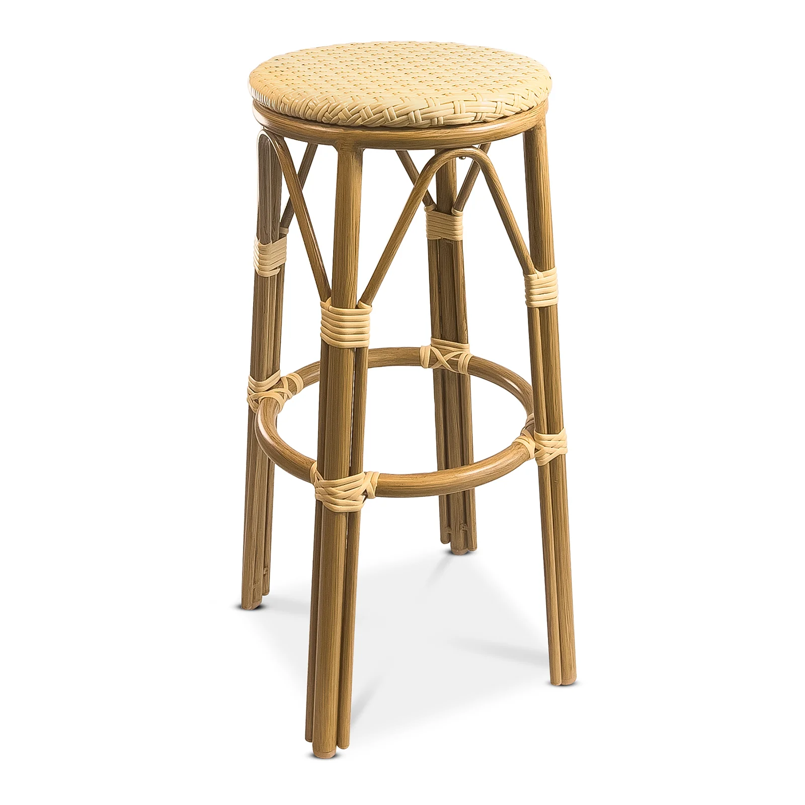 ParisBarpall Paris i creme fiberrotting är en prisvärd och stilren sittplats för både inom- och utomhusbruk. Den har en lätt aluminiumstomme i bambu-look, en sitthöjd på 75 cm och ett bekvämt fotstöd, vilket gör den idealisk för krävande offentliga miljöer.