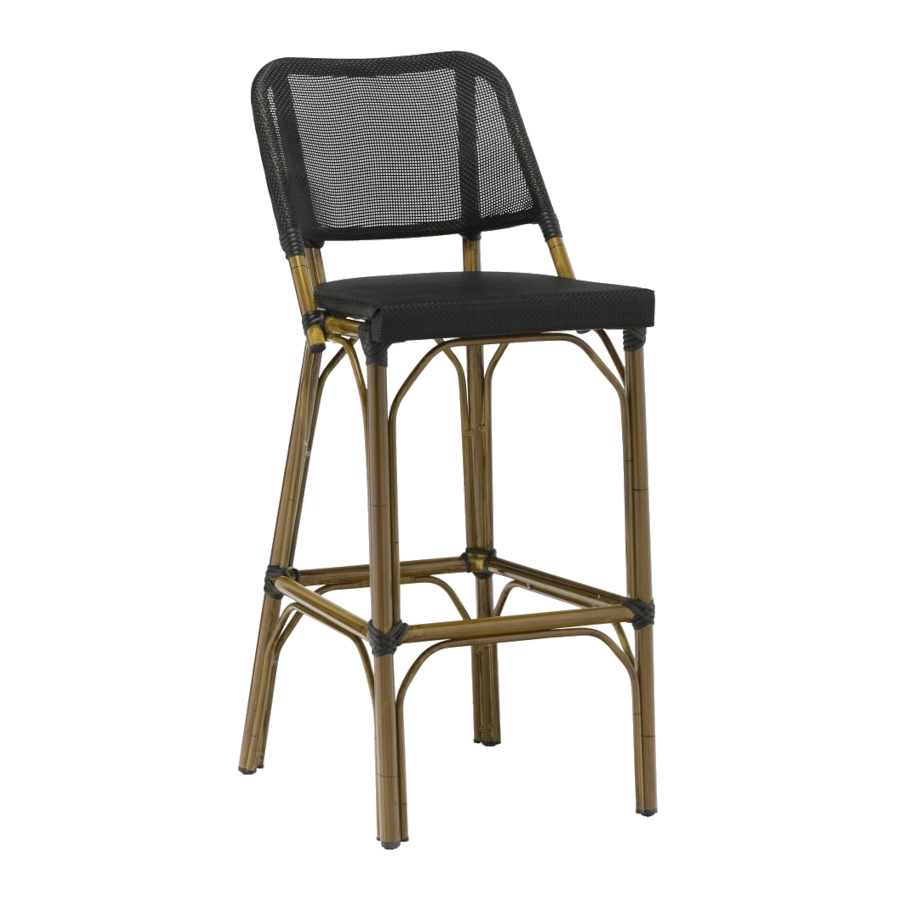ParisParis IV barstol kombinerar klassisk bistrostil med en hållbar konstruktion i aluminium med bambu-look. Den slitstarka textilene-väven i sits och rygg gör den idealisk för uteserveringar, medan den låga vikten gör den smidig att hantera trots sin robusta kvalitet.
