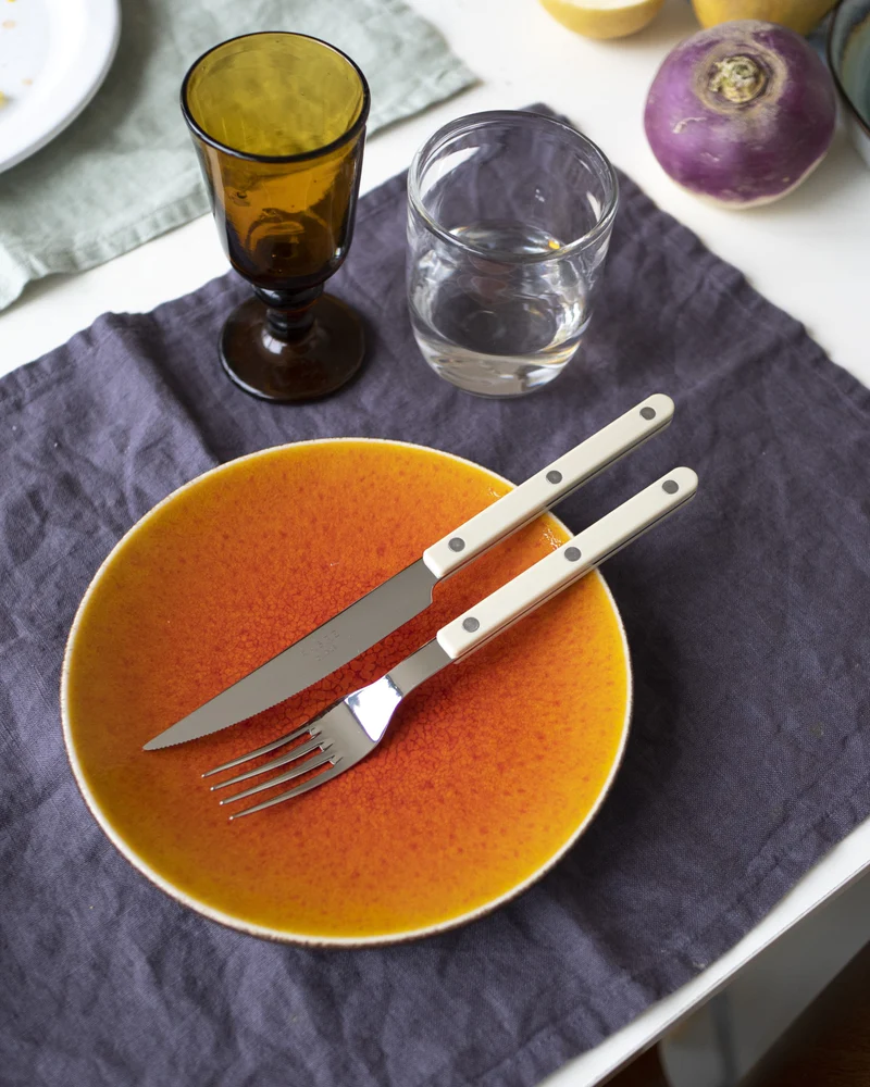 Bordskniv i blankt rostfritt utförande med handtag i BPA-fri akryl. Besticken Bistrot tål att diskas i maskin upp till 45 grader.