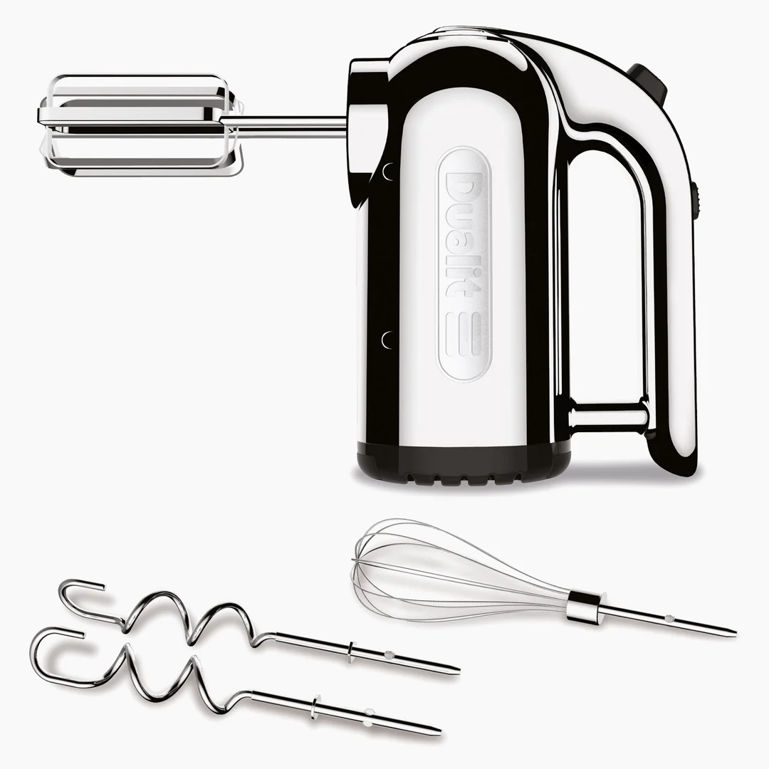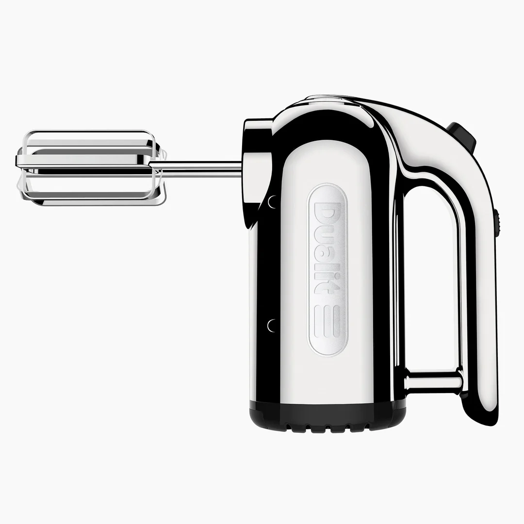 Denna Dualit Handmixer kombinerar en kompakt design med kraftfull prestanda, driven av en 400-watts motor och fyra hastighetsinställningar. Mixern har ett snyggt hölje i rostfritt stål med en tidlös retroestetik. Den är lätt, har ett ergonomiskt handtag för bekväm kontroll och är ett oumbärligt verktyg i köket som är både lätt att förvara och alltid redo att användas.
