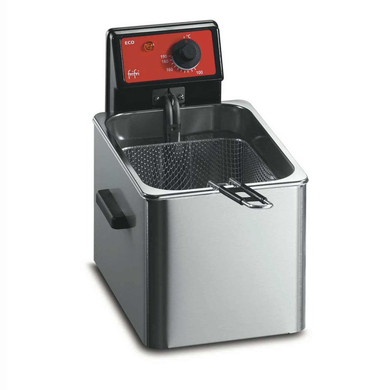 Fri FriFritös Eco 6 från Fri-Fri med en kapacitet på 5-6 kg/tim. Kontrollpanel och element i en enhet som enkelt kan lyftas ur vid rengöring.