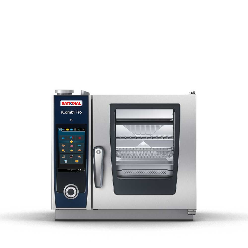 iCombi ProKombiugn iCombi Pro XS med 6 st längsgående gejderspår för 2/3 GN-kantiner är en robust, effektiv och tillförlitlig kombiugn från Rational. Ugnen är mycket lättanvänd och ger en hög och jämn kvalitet på maten. Passar utmärkt till att grilla, ångkoka, baka, sjuda, koka och mycket mer.