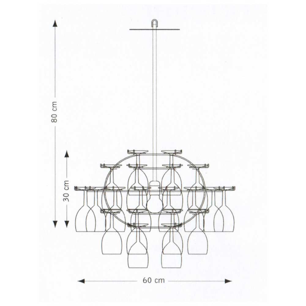 GlasklasenTakarmatur Glasklasen för 40 glas i kromat stål. Klasen är inte bara en vacker taklampa utan även en förvaring för upp till 40 st glas på fot. Diameter: 60cm Höjd utan glas: 30cm Totalhöjd utan glas: 80cm Ytfinish: Svart