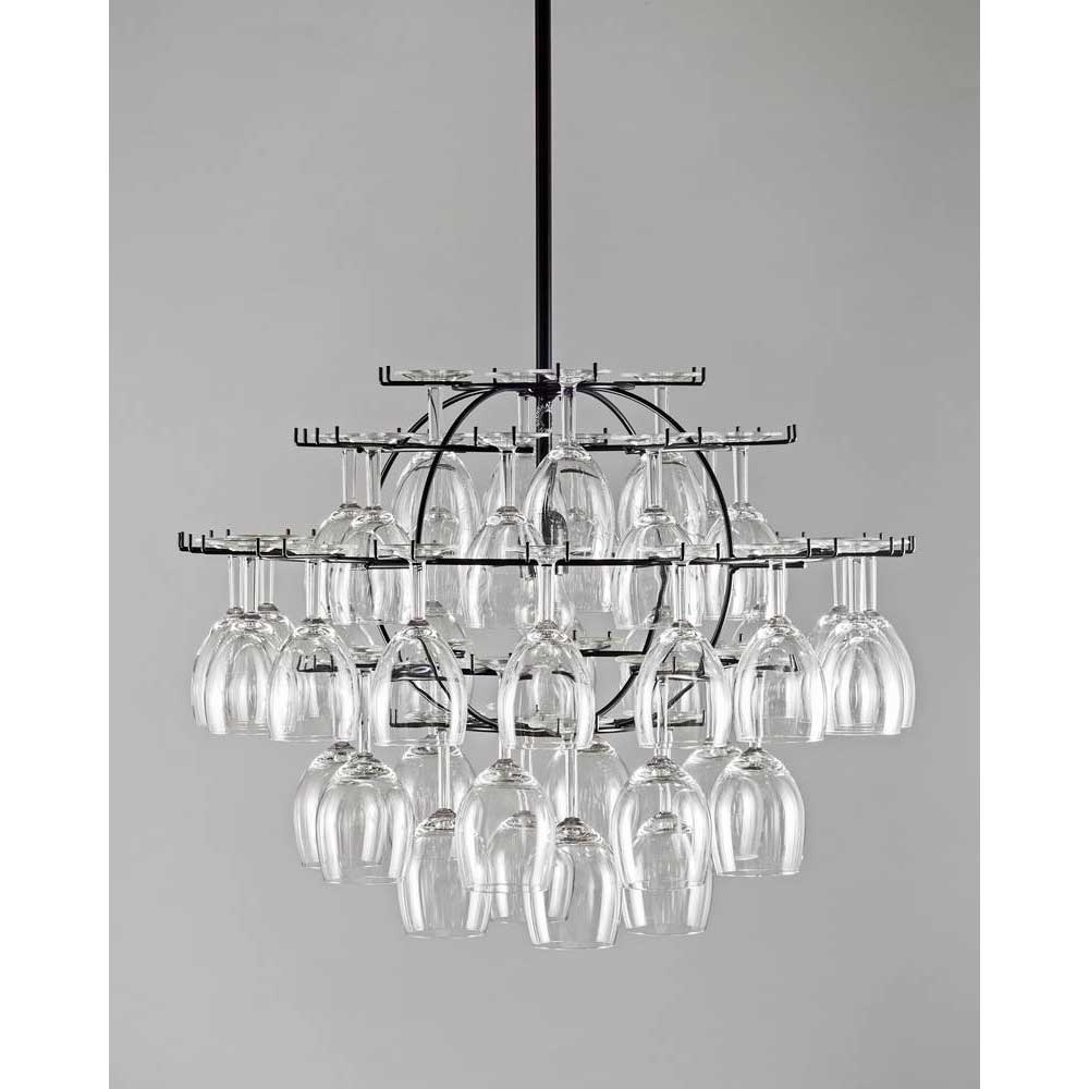 Takarmatur Glasklasen för 40 glas i kromat stål. Klasen är inte bara en vacker taklampa utan även en förvaring för upp till 40 st glas på fot.
