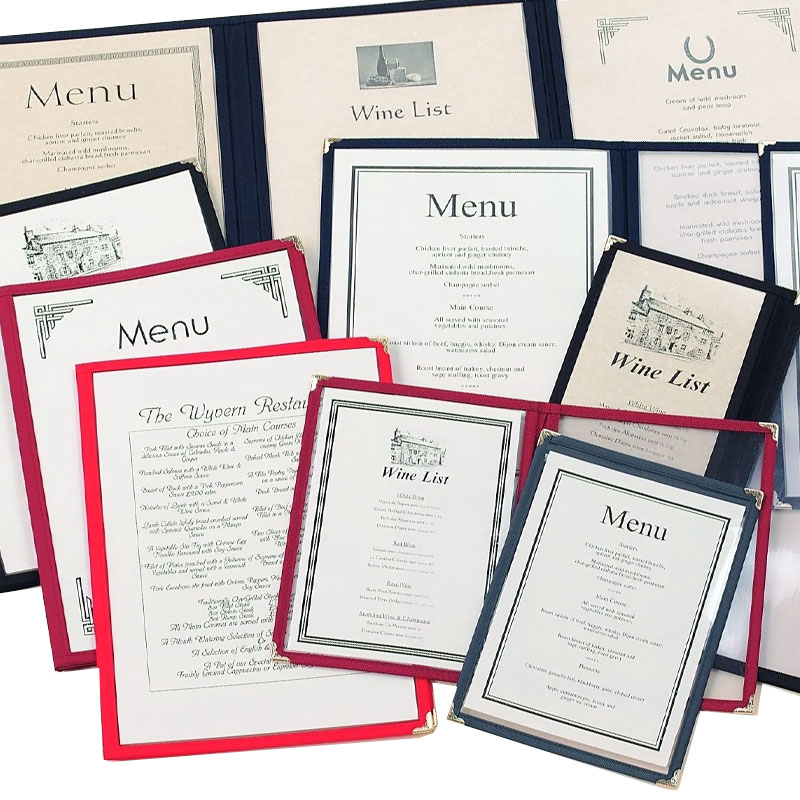 AmericanMenymapp A4 med grön nylonram och hörn i mässing. PVC fönster i högsta kvalitet.