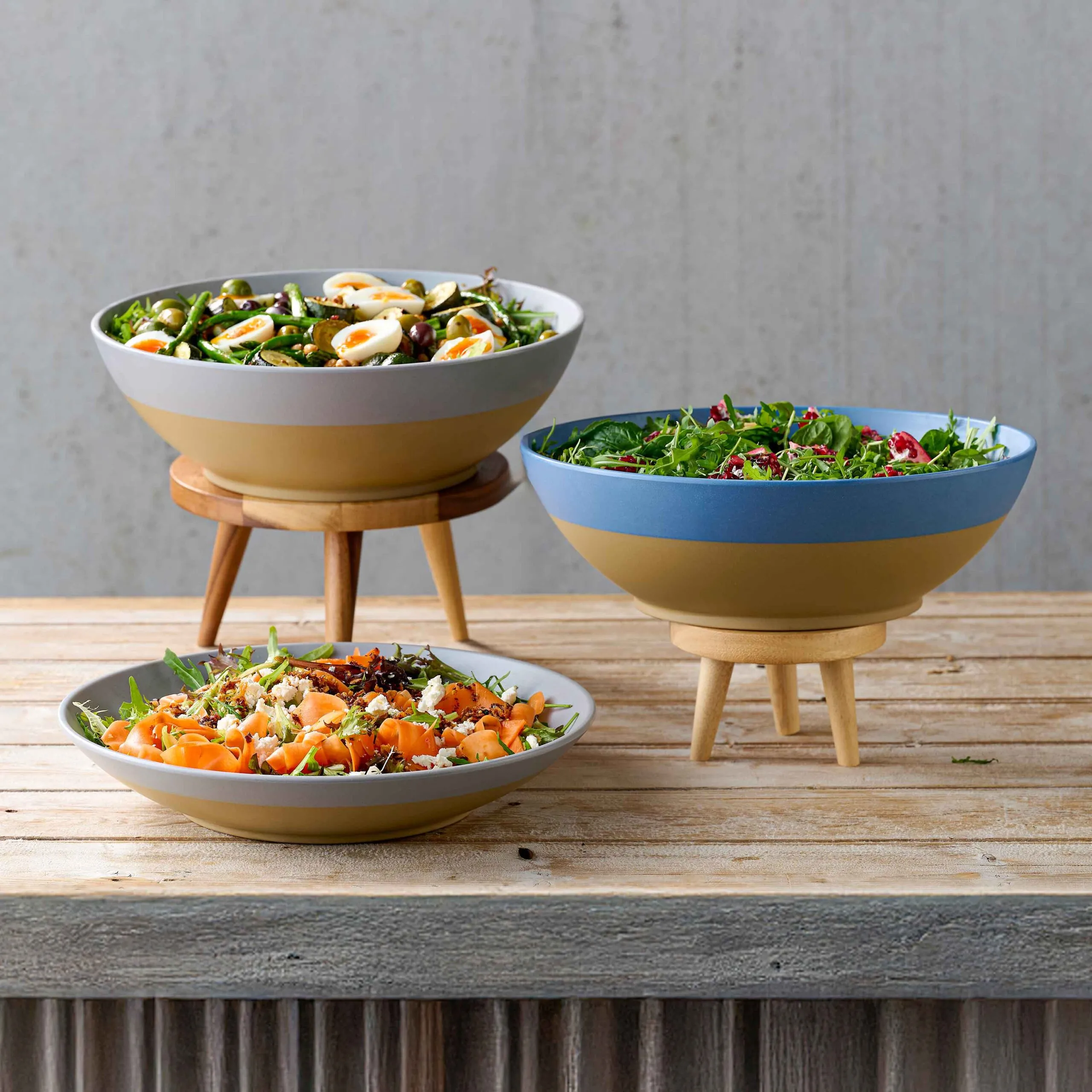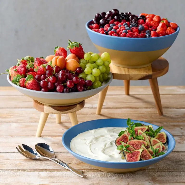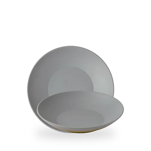 Stor låg skål i grå melamin med 36 cm diameter. Slitstark och lätt, idealisk för servering av sallader, frukt eller större rätter.
