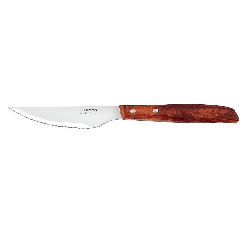 Denna stekkniv från Arcos, en ledande tillverkare sedan 1734, har ett blad som är smitt i det korrosions- och värmebeständiga NITRUM® rostfria stålet. Handtaget är tillverkat av komprimerat poppelträ, vilket gör det vattenresistent.