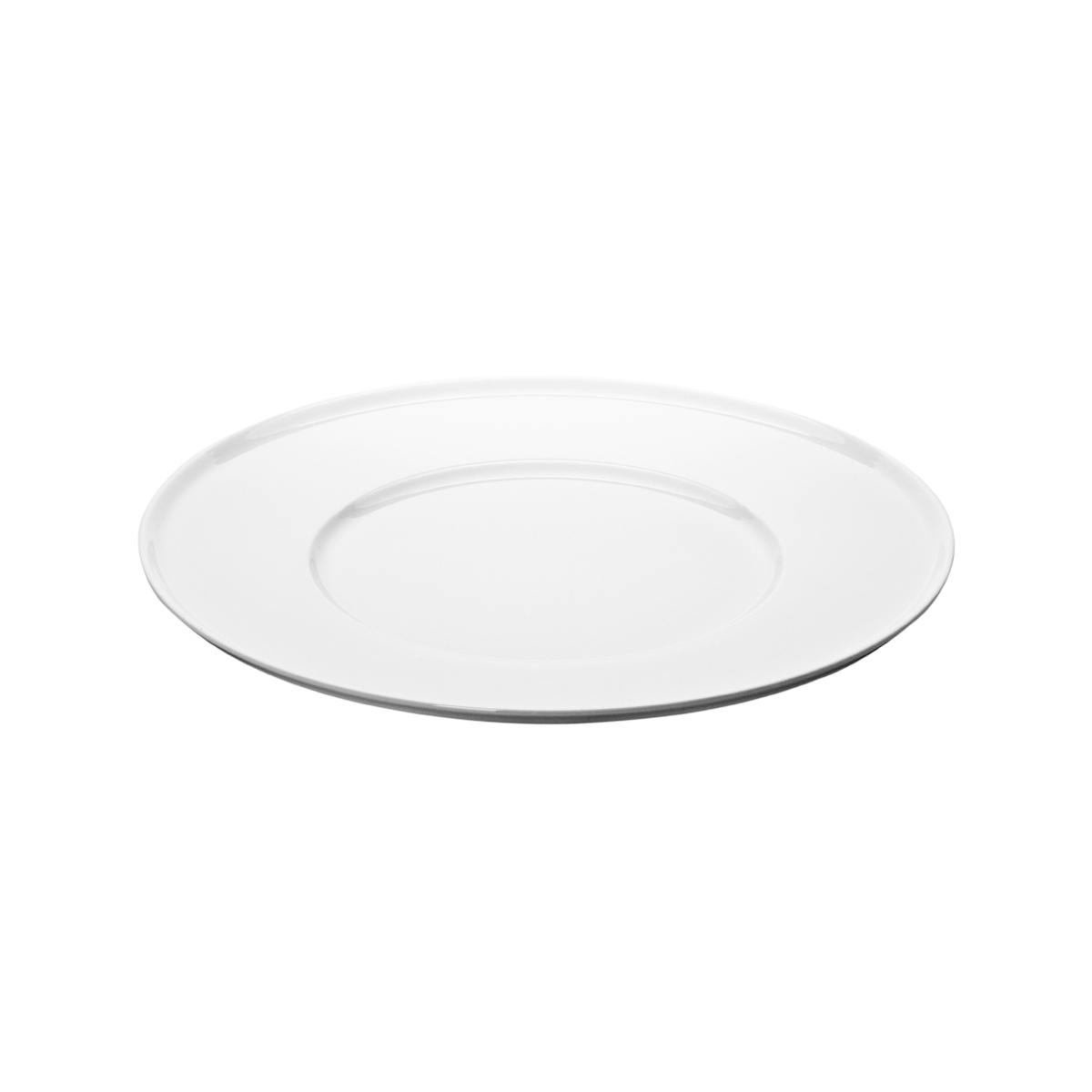 Vit tallrik tillverkad av porslin i serien Front Dining från Figgjo. Formgiven av Constance G. Kristiansen, Jens Olav Hetland och Olav Joa.