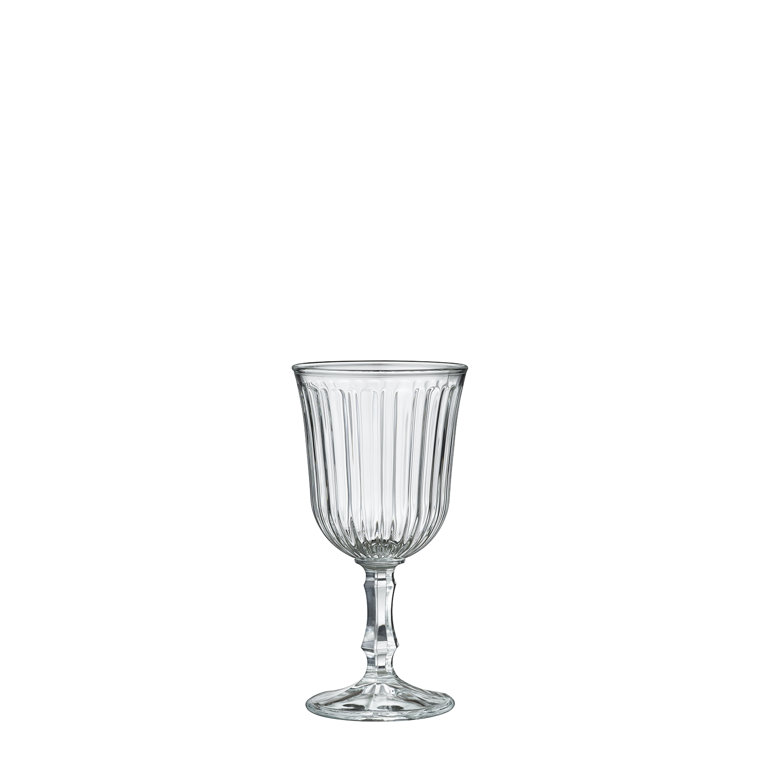 BelemVatten- eller vinglas i serien Belem från den amerikanska glastillverkaren Libbey. Belem är ett hållbart glas tillverkat i blyfri kristall. Glaset är i retrostil med en design inspirerad av det eleganta 20-talet. Kupan har ett dekorativt mönster med inetsade ränder och benet har ett fint kristallslipat mönster.